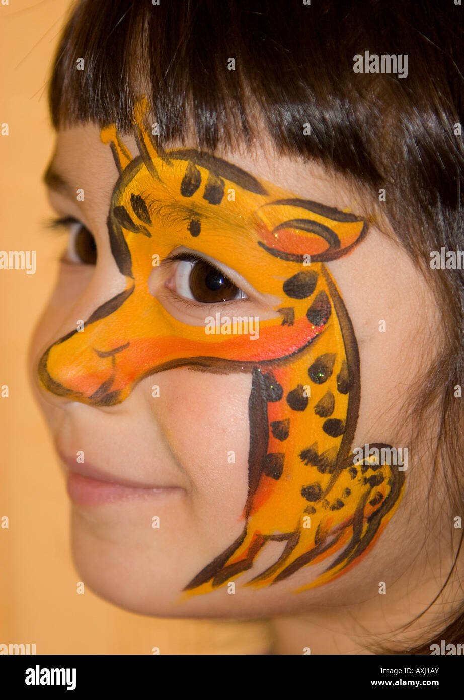 Muchacha con jirafas pintura facial Fotografía de stock - Alamy