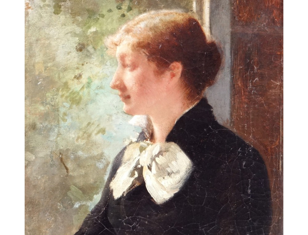 HST tableau impressionniste portrait jeune femme élégante H.Leroy XIXème